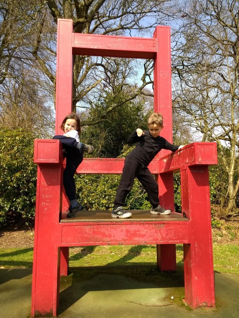 Cool details of Vogrie Park are statues that may (always!), or may not, be used for games and plays, all along the park. Then ponds where we often befriend very cute frogs of all sizes, and of course a big enough adventure play area to satisfy energy bursts in children of all ages.